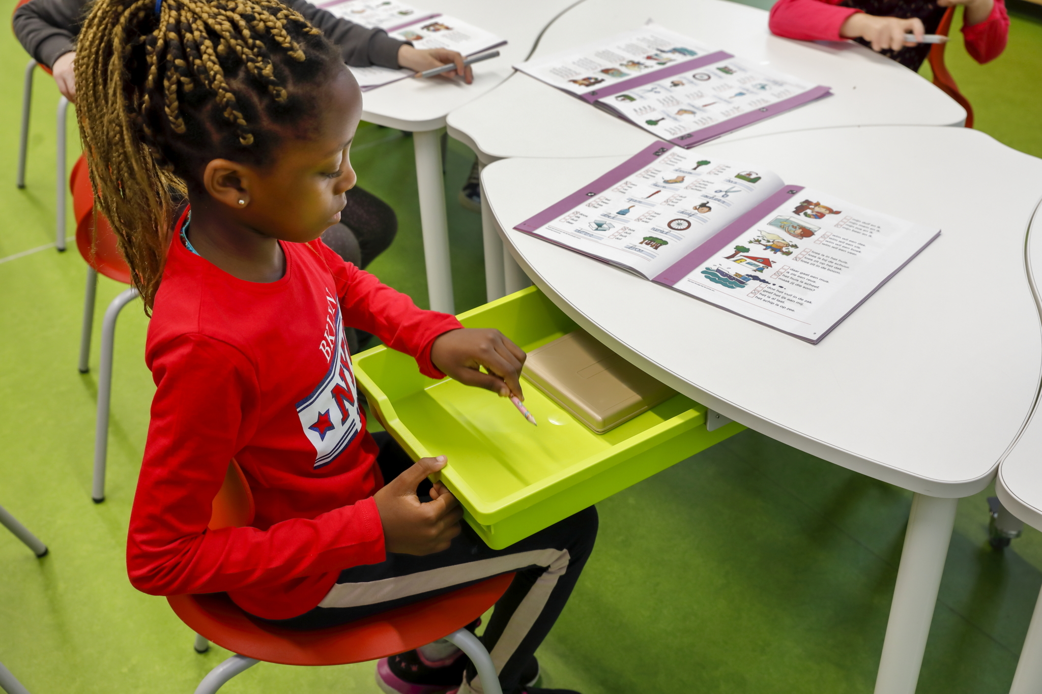“Flexibility is our middle name”. De golftafels zijn hiervan het oer-voorbeeld, ze kunnen namelijk in alle mogelijke vormen gezet worden, met of zonder wieltjes. Bovendien kunnen de leerlingenbakjes eruit gehaald worden, waardoor er makkelijk van tafel gewisseld kan worden.